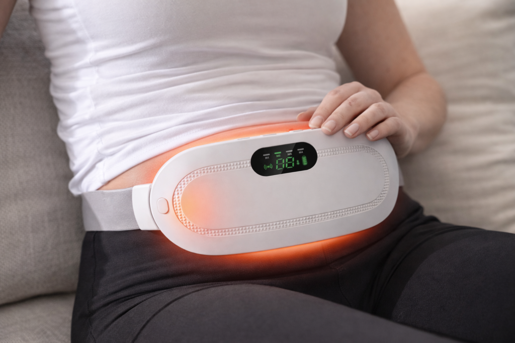 Almohadilla térmica con calor y vibración para cólicos.